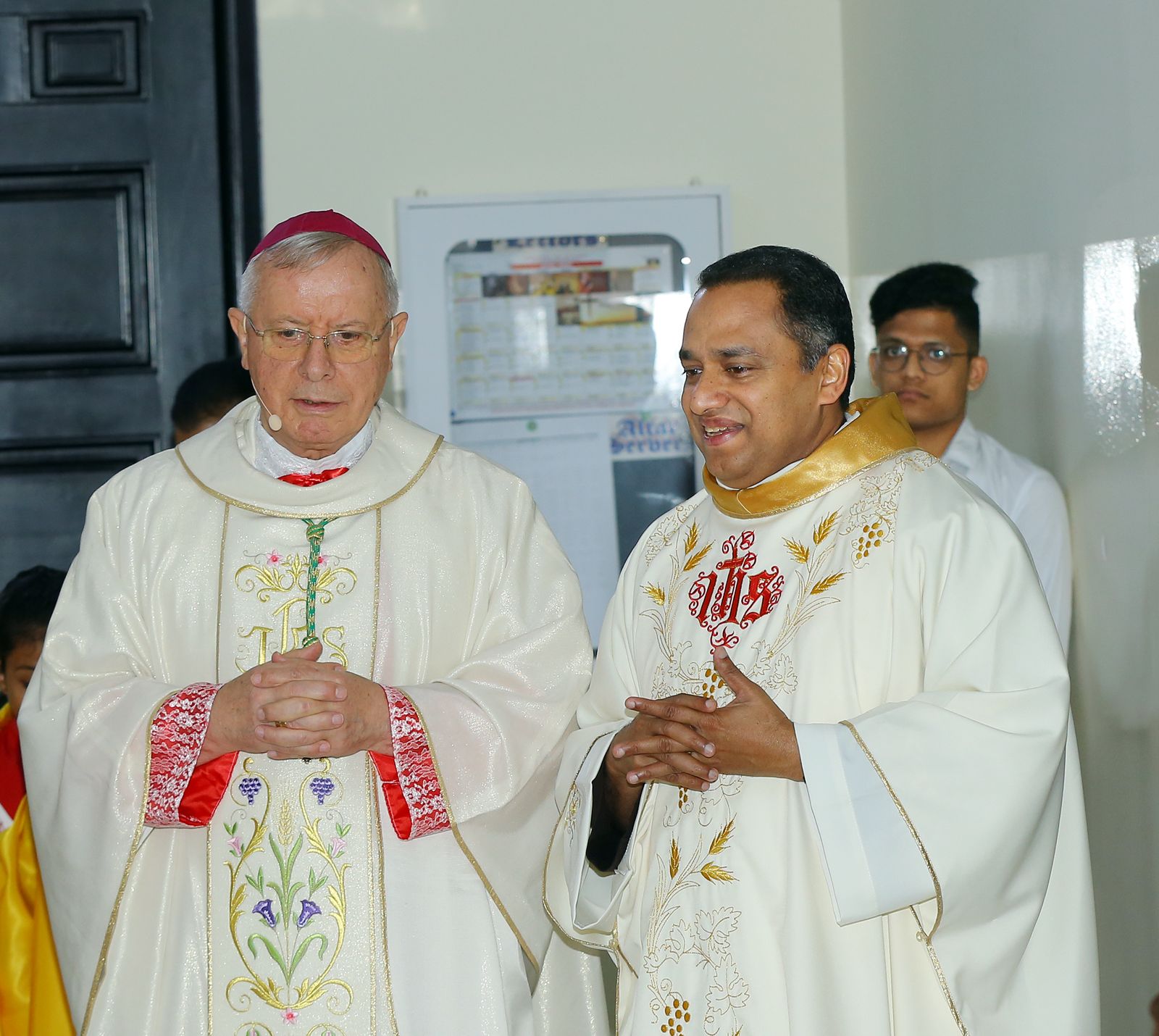 The first Parish Priest, Fr. Barnabas, took charge in 1988. Under his guidance, the church saw the construction of vital facilities including a recreational centre, classrooms, a grotto dedicated to Our Lady of Lourdes, and a beautiful pipe organ, a royal gift from Sultan Qaboos, and the only one of its kind in the Vicariate of Arabia.